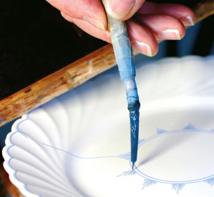 - Klassisk blått stråmønster, håndmalt på hvitt porselen
