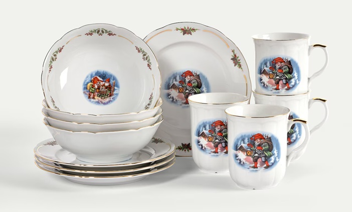 Selv om uttrykket er lekent og barnevennlig, er serviset laget i slitesterkt feltspatporselen. Det er et kvalitetsservise som tåler å være i bruk gjennom mange julesesonger.