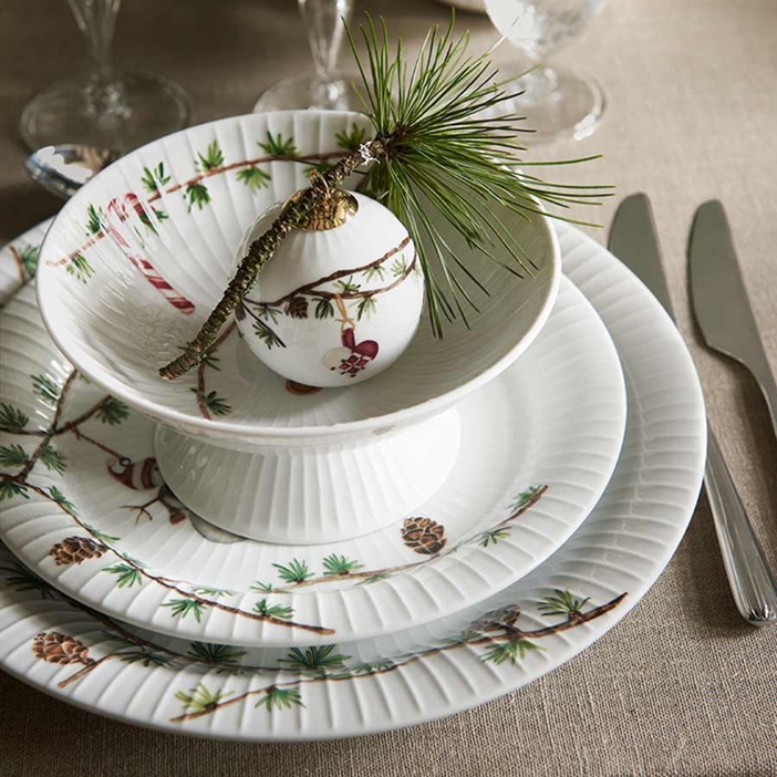 Selv om mange forbinder juleservise med sterke innslag av rødt, viser Spode Christmas Tree hvordan grønt kan være et like godt utgangspunkt for julens borddekking. Det grønne juletreet gir en klassisk og rolig ramme, mens små detaljer i rødt og gull understreker høytidsfølelsen uten å dominere.